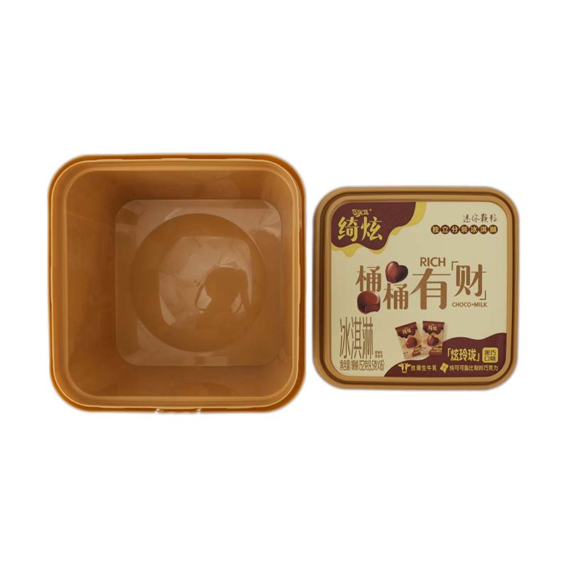- PP -plastic container kan worden gebruikt voor ijs, yoghurt, snoep, pudding en kan ook worden gebruikt voor andere gerelateerde voedselopslag. De container kan met IML zijn, lepel geassembleerd onder het deksel. Spuitgieten plastic, wat een goede verpakking is en wegwerpbaar en duurzaam.